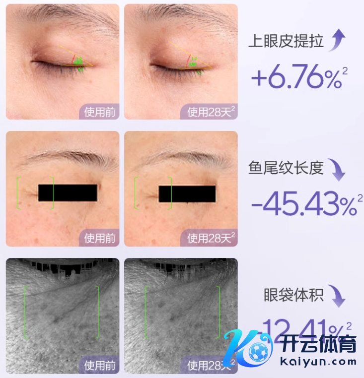 品牌还特地去作念了实验,7 天就能有用进步眼部景色,使用一个完整周期 28 天,眼皮拿起来了,鱼尾纹和眼袋王人淡化了。
