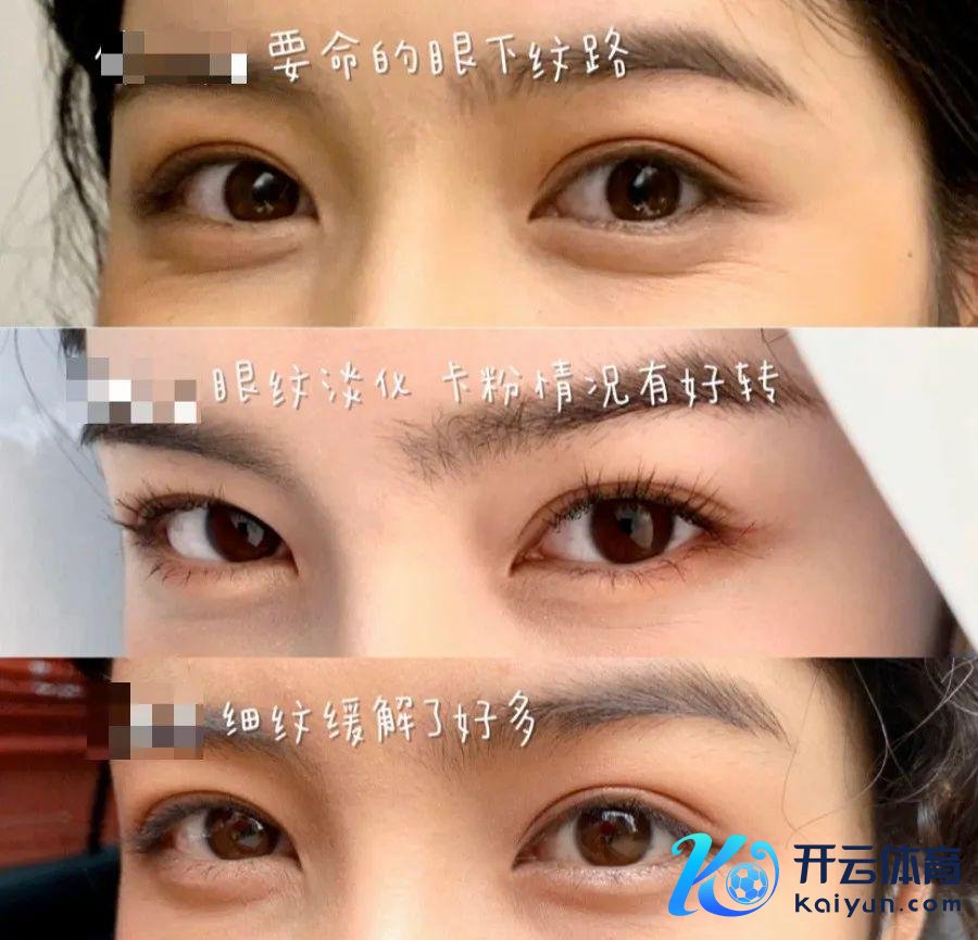 我我方因为常常熬夜和化妆的原因,眼周一些干纹和细纹,眼周暗千里,泪沟也赫然。